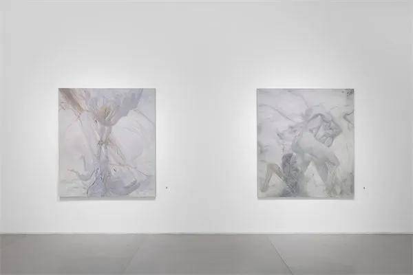 神话形象的变体常出现在张颖的绘画母题中,同时她对历史建筑和大理石纹样也怀有持久的迷恋。那些源自古典柱式的形制,在现代工业制品的大理石中被抽象化为装饰纹理,最终被张颖转化为神话身体的血脉流动和生长肌理。具象形象的轮廓和抽象结构的线条,在张颖的绘画语言中是彼此依存的一体两面。神话的迷思、古典的遗迹和现代的装饰,在此被视为一种贯穿人类精神寄托和物质生活的视觉脉络,最终传递出的是个体在现实世界的图景中对自我处境的调和。