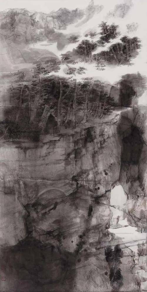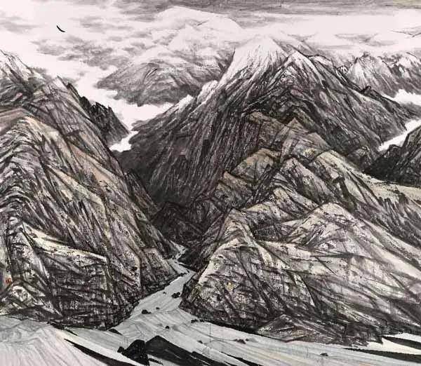 陆学东 《边防线上》 纸本水墨 240×240cm 2020年