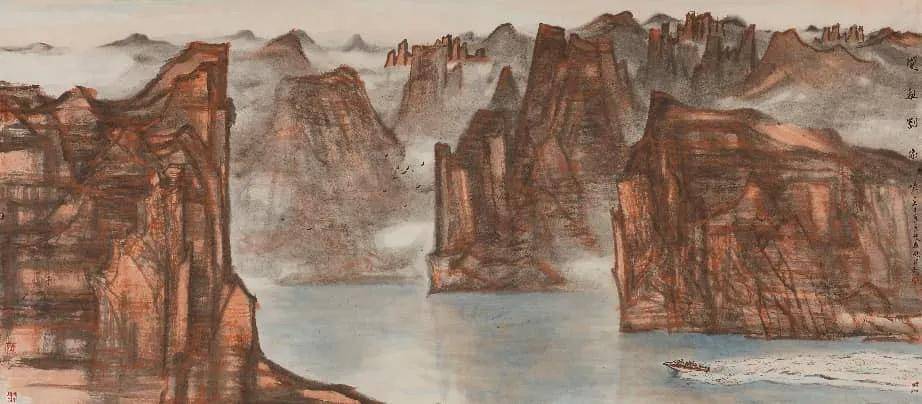 赵拟 《闲艇刘家峡》 纸本设色 80×180cm 2022年
