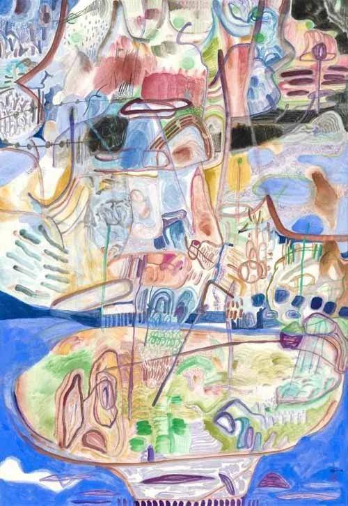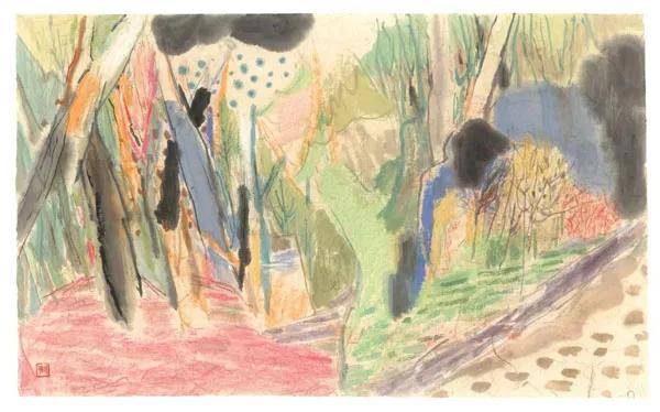 邓超 《风景系列3》 纸本水墨、色粉 27×38cm 2024年