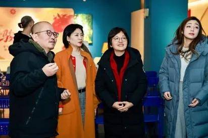 刘若望向富华国际集团、金宝汇购物中心领导介绍《窗外》作品